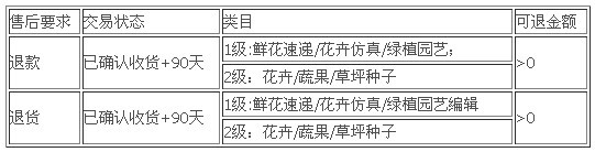 此外,本期產(chǎn)品還增加了特殊類目的逆向入口時間。主要是由于伴隨交易商品種類越來越多,部分商品并非在交易成功后的15天內(nèi)就能發(fā)現(xiàn)商品好壞,比如:花苗種子這類商品,本期將花苗種子類目的售后入口開放到確認(rèn)收貨后的90天。