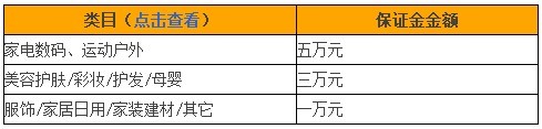 (七) 在綁定的支付寶賬戶中足額存入入駐保證金,各類目保證金如下表,申請同時經營多個類目的按最高值收取:(類目點擊查看)