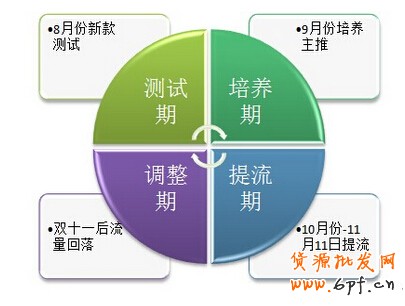 培養(yǎng)期:在8月份的產(chǎn)品開始預熱后,測試出明確款式。9月份,就需要對產(chǎn)品進行推廣,而這時候的推廣,就是為了逐步加大力度培養(yǎng)關鍵詞等,以便在接近雙十一的時候能夠有較好的質(zhì)量,來降低成本。