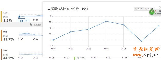 1質(zhì)量分占比,能綜合判斷出整體計(jì)劃的質(zhì)量分值的比例,比如說我們的九分十分比較多,比例比較大,那我們計(jì)劃的整體推廣效果就比較好,可能之后加分的基礎(chǔ)分就比較高。而且還可以看出近7天的質(zhì)量分的漲幅趨勢