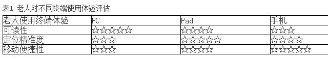 在PC端上網,鼠標的使用至關重要,雖然這些用戶已經有較長時間的網齡,但隨著年齡增加帶來的動作遲緩,導致用戶使用鼠標時變得小心翼翼。尤其是在定位一些具體的文字鏈接時這種現象更為明顯。實際觀察中發現,這些老人用鼠標定位到具體鏈接需要花費一定的時間,而手機和Pad的觸屏優勢降低了使用鼠標的成本,手指點點即可入網,同時手機和Pad的天然優勢是便攜性、移動性,可在碎片時間端隨時隨地上網。