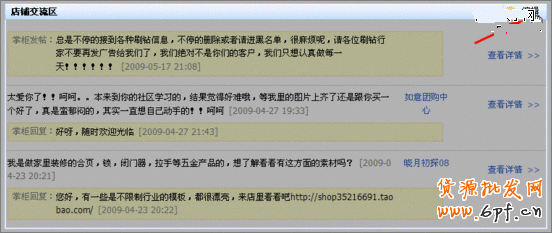 交流互動是網絡的最大優勢,淘寶給每個店家一個獨立的“店鋪的交流區”,功能非常強大,就像自己的一個小論壇,您在這里就是"版主"了,不用在擔心別人刪除你帖子,而且誰想留言發帖、是否被審批后顯示、能不能成為精華……生殺大權全在你噢,有很多朋友可能還不是很清楚,下面我告訴您如何好好利用店鋪交流區。