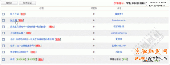 上面我們設定好顯示模式后,下面學習管理,就是如何發表、回復、刪除、置頂精華噢,這樣我們才能更好的跟訪問者交流。即時回復留言、刪除那些無聊的廣告……