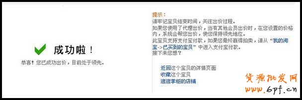 第四步:點此查看判斷是否競拍成功的方法,競拍成功后,在“已買到的寶貝”頁面就可以查看到拍下的交易記錄了,后續流程同商品購買流程。