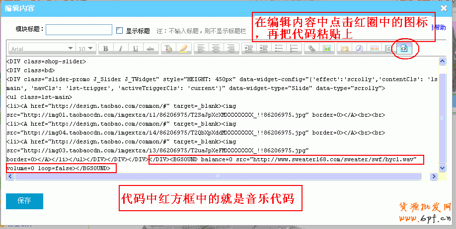 第三步:把音樂代碼填到網店上。