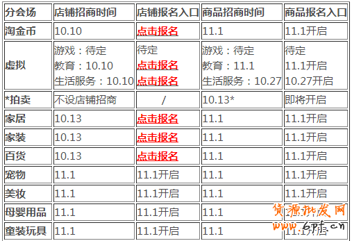 以下是淘寶網“雙12”22個分會場的店鋪招商&商品招商時間( 點擊報名或了解更多>>>):