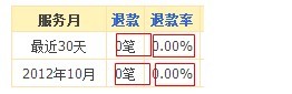 計算方法:退款率=近30天成功退款筆數/近30天支付寶交易筆數*100%;
