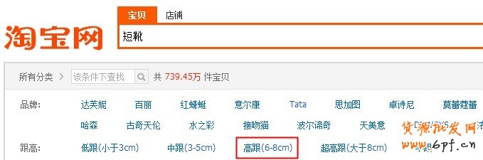 如通過首頁搜索欄下點擊短靴進去,選擇高跟鞋:
