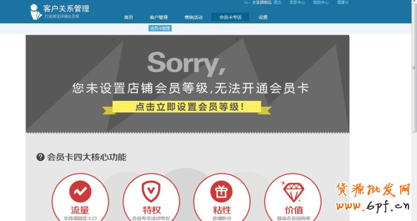 若您的店鋪達到4鉆但未設置會員等級,點擊先設置會員等級,再開通會員卡哦: