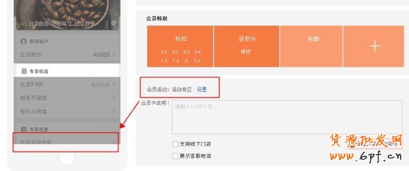 會員卡說明設置------賣家可在會員卡說明頁說明會員等級、會員權益等;