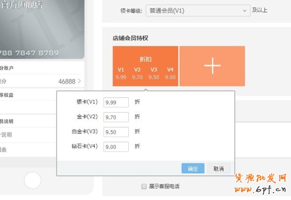 固定權益設置:會員專享折扣,不同等級設置不同的折扣,必須要設!