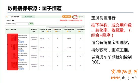 對于有一定銷量的寶貝,我們同樣可以利用量子恒道獲取數(shù)據(jù)指標(biāo),但與零銷量寶貝的選取功能維度不同,我們要在“寶貝銷售排行”這項(xiàng)功能中,獲取對應(yīng)的數(shù)據(jù)。建議選取的數(shù)據(jù)維度:拍下件數(shù)、成交用戶數(shù)、轉(zhuǎn)化率和收藏量。