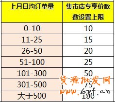 A:集市商品設置手機專享,是根據該店鋪的上個月的日均銷量來開放設置數量的上限,具體標準如下: