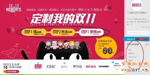 首先,雙11未到,你當前看到“定制我的雙11”頁面會發現所謂的“三步曲”(如圖黑圈所指),還有右側欄“我關注的品牌”(如圖紅圈所指,因我關注了11個,所以數量顯示11)!當前點擊其中一個品牌會顯示出該品牌的品牌動態和活動主題等簡單信息,我們可以大膽預測,頁面顯示的所謂“STEP3 獲得清單”的意思是說,到雙11時,你只要一點右側欄“我關注的品牌”列表中某個品牌,就會馬上出現這個品牌雙11要賣的產品列表(行內叫商品承接頁面),這樣就免去了你在那寶貴的24小時里到處尋尋覓覓的“辛苦”和“低效”!第一板斧介紹完畢!
