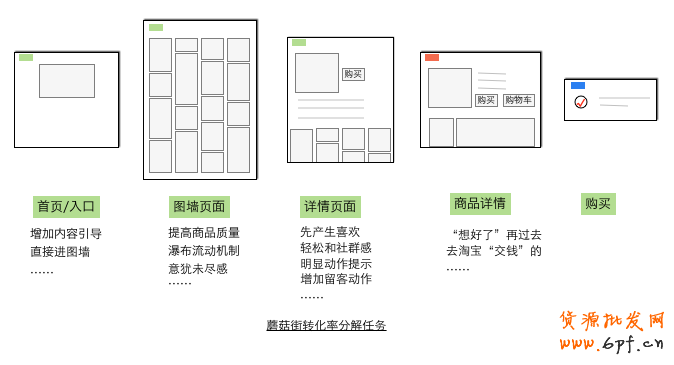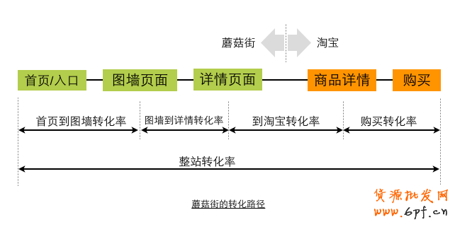 圖中可以看到,蘑菇街的瀏覽-購買路徑,存在“在蘑菇街逛”和“去淘寶買”兩個部分。