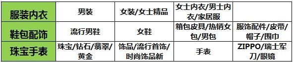 2、面向服裝內衣、鞋包配飾、珠寶手表3個大類目的商家;