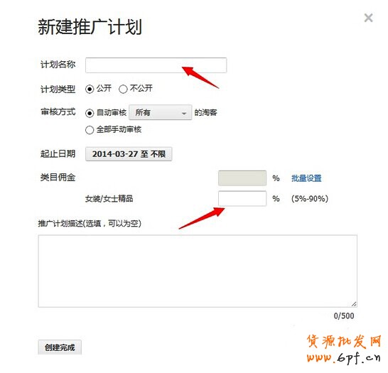 第六步,接著賣家就可以進入到淘寶客推廣的頁面,進入“推廣管理”,并新建推廣計劃,填寫好推廣計劃里面的信息,如計劃名稱,審核方式等等。具體內容顯示如下: