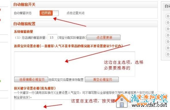 下面來看看我的工具是怎么操作的,其實很簡單,就一鍵搞定,點開關(guān)開啟,系統(tǒng)就會識別出快要下架的寶貝給予推薦櫥窗,快捷方便,不費精力整天去跟那些即將下架的寶貝。