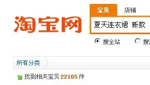 大家都很清楚的看到了,“連衣裙”這個關鍵詞下的寶貝數超過1900萬個,而“夏天連衣裙新款”這個詞下的寶貝僅為22165個。請大家記住這兩個數字,等下需要用到。