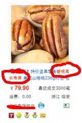 兩個詞都是紅色的,說明都一樣是可以被搜到的,就是說標(biāo)題中有“碧根果”或“長壽果”,兩個詞都可以搜到。