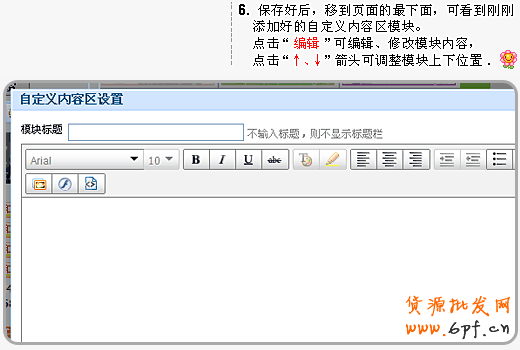 7.點(diǎn)擊“編輯”,會(huì)彈出自定義模板編輯面板,模塊標(biāo)題處不用輸入任何標(biāo)題。