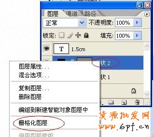 鼠標放在【形狀2】圖層后,右擊鼠標彈出對話框后,選擇【柵格化圖層】,如下圖: