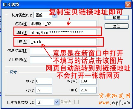 接下來對圖片右邊進行切片,和剛才一樣的方法。裁剪工具——選取需要裁剪的——敲回車—— 切片工具——右鍵——切片選項——設置連接地址