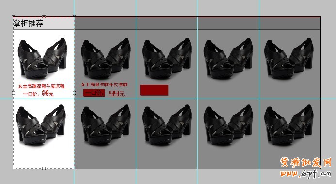 圖片分割完成之后,我們將準備好的寶貝圖片放到相應的圖層上,再用文字工具 寫上產品標題和價格,如圖所示:
