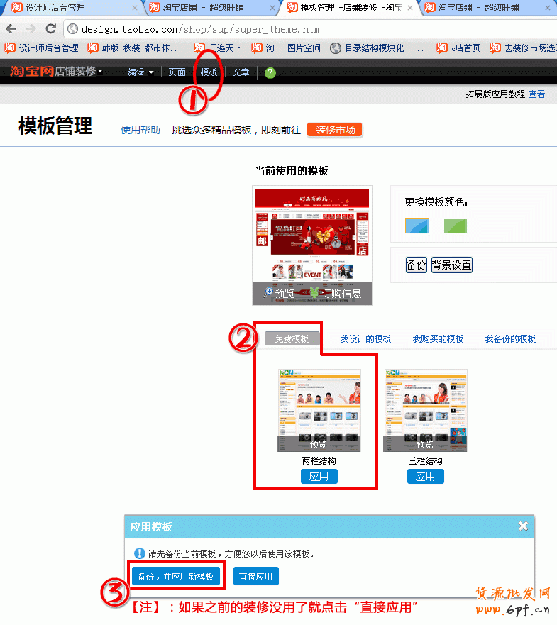答:如果直接應用我購買的模板或者直接點擊升級會導致店鋪數據異常,比如和以前購買的模板樣式數據重疊、使用寶貝選擇器時選不了寶貝等等問題!
