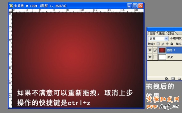 Step3:選擇色調,改變前景色和背景色,填充圖層1,做為寶貝的背景。操作如圖