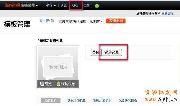 如需設置店招的背景,請點擊模板,進入之后點擊背景設置,選擇頁頭背景,上傳您需要的背景圖即可,如下圖所示: