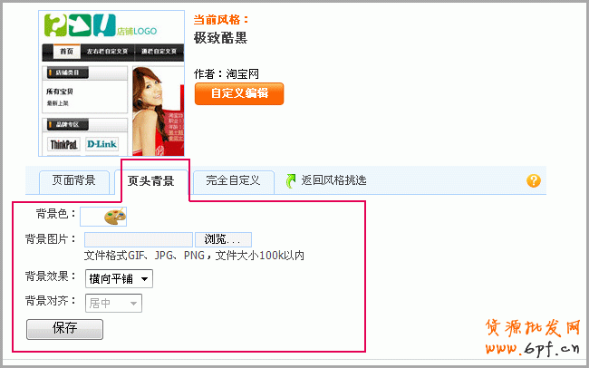 頁頭背景指的是店鋪頁頭,也就是通常所說的店招欄布局的整體背景!!如下圖所示: