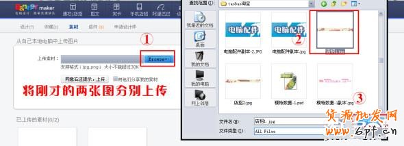 在“管理素材”的界面里 ,將裁切好的兩張圖上傳。