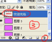 8.選擇圖層三(如圖一)。按delete刪除除文字以外的區域(如圖二)。然后選擇圖層二同時關掉圖層三的眼睛,刪除除文字以外的區域(如圖三)。最后選擇圖層一,刪除除文字以外的區域,同時關掉圖層二的眼睛,效果(如圖四)。