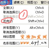 7.點擊選擇反向,(如圖一)效果(如圖二)然后選擇文字體層,按下面的刪除按鈕(如圖三)。效果如圖四。