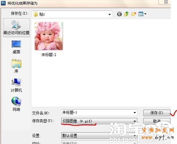 先講第一種,直接將圖片存儲為,然后選擇gif格式,然后上傳到淘寶的圖片空間,在自定義模板處點擊插入圖片,選擇這個圖片就可以了。