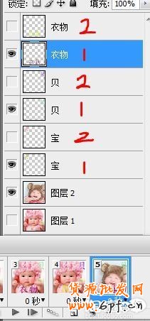 7.選中幀1,在圖層面板上選擇這個幀需要顯示的內(nèi)容