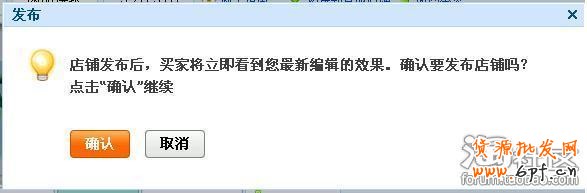 、最后,在裝修頁面編輯區中點擊“發布”按鈕,并在出現對話框中點擊“確認”,就可以讓我們制作的促銷區展現在各位買家朋友的面前了。