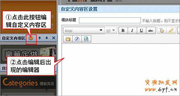 3、復(fù)制好后,到“管理我的店鋪”-“店鋪裝修”-“添加自定義內(nèi)容區(qū)”-“編輯模塊”把旺旺圖標(biāo)粘貼到里面。