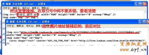【在這里要強調一下如果你的店鋪做多個模板一定要記得給代碼改名字!如果不改名字的話那店鋪里只認一個模板代碼,相當于你用幾個代碼,但是連接都是一樣的,會造成連接不對板,我之前碰到過這種情況,研究了半天才知道問題所在,如果碰到這種情況在這里看不懂的可以在線M我.改名字方法是,打開剛才保存好的記事本找到usemap="#Map" 和name="Map" 這兩個里面,Map就是代碼默認的名字,可以隨變改成別的但第一個值必須相同,舉個例子,如果你已經有個代碼是usemap="#Map" 和name="Map",那你再做另一個模板時要改成usemap="#M1p" 和name="M1p" 改好之后記得保存記事本就行了】