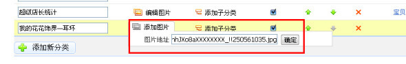 首先要把圖片傳到淘寶空間上了,這里就不詳細講明了,現在我們繼續添加好一個分類文字后,這個頁面不要動呦,要保留著。打開我們的圖片空間,就會看見我們傳上去要放在分類的圖片,把鼠標移過去,放在要傳上去的圖片上就會出現
