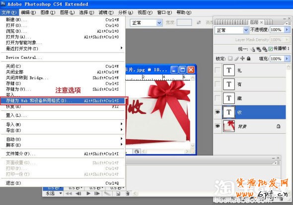 10. 成功后點(diǎn)擊【文件】——【存儲為WEB和設(shè)備所用格式】——【GIF】——儲存(很重要,保存格式 一定要是GIF格式的,不然動不了)