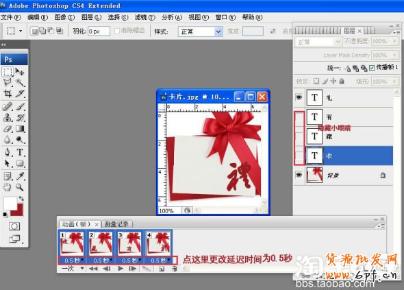 4. 點(diǎn)“禮”“有”“藏”三個(gè)圖層前面的小眼睛,把它們隱藏掉。效果如圖