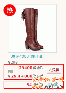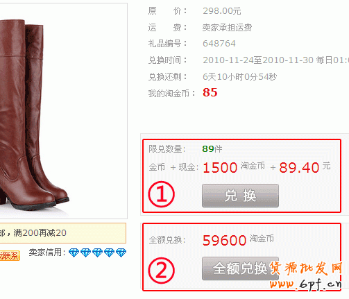 折扣兌換:使用淘金幣+現金進行兌換得到禮品,點擊“兌換”(圖上①標示)