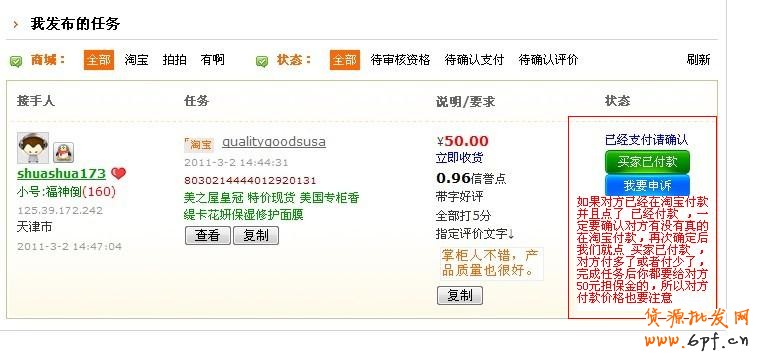 前提工作都完成后下面就是接發(fā)任務雙方的具體流程,雙方各個步驟的狀態(tài)將同步顯示,兩個一起看就行.