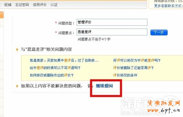 進入淘寶咨詢客服端口,按照圖做 、點擊繼續提問