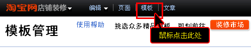 首先,點擊裝修頁面左上角的“模板”。