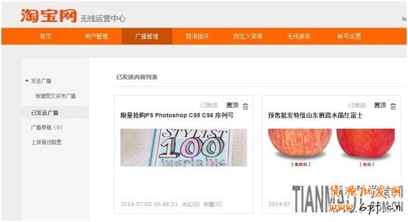 (1)進入淘寶無線運營中心,進入“廣播管理”