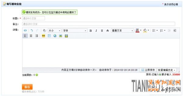 PS:當模塊新建完成后,若你對內容不滿意,可以在新建完成的窗口上繼續對模塊內容做編輯,修改完成后直接點擊保存就可以對剛才建立的模塊內容做覆蓋