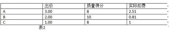 大家看表格A為什么拍第一,A的綜合排名是3*8=24,B的綜合排名是2*8=16,所以A排第一名。哪現(xiàn)在A的扣費=B的出價XB的質(zhì)量得分/A質(zhì)量得分 + 0.01元,也就是2*8/8+0.01=2.01,接下來我們看下一個表格2